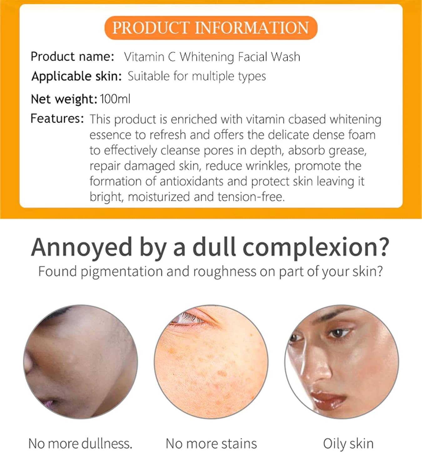 Esta espuma limpiadora facial está enriquecida con esencia de vitamina C, diseñada para refrescar y revitalizar tu piel desde la primera aplicación. Su fórmula avanzada genera una espuma delicada y densa que penetra profundamente en los poros, eliminando eficazmente: