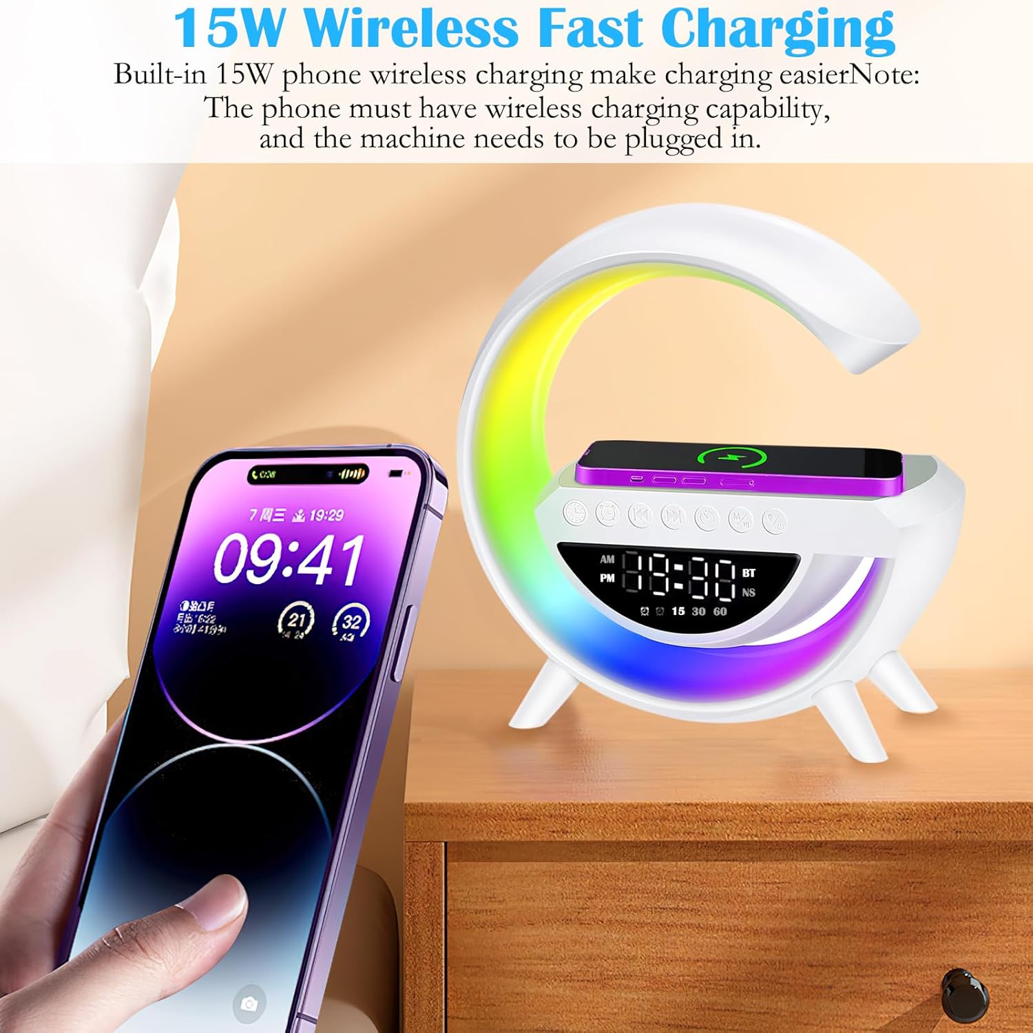 Lámpara LED de Mesa Inteligente 5 en 1 – Luz RGB, Altavoz Bluetooth, Cargador Inalámbrico y Más